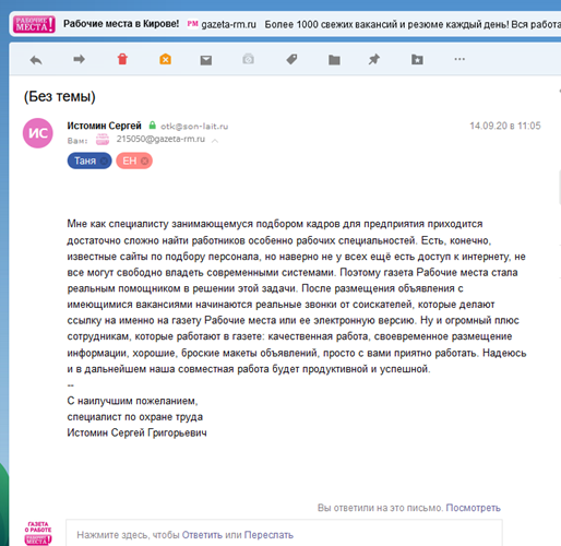 Это может значить, что Вы работаете с теми, кто обещает быть КАК "Рабочие места"! Уникальный сервис издания и внедрение передовых методов в построении сотрудничества позволяют держать достойную планку уже более 20 лет.