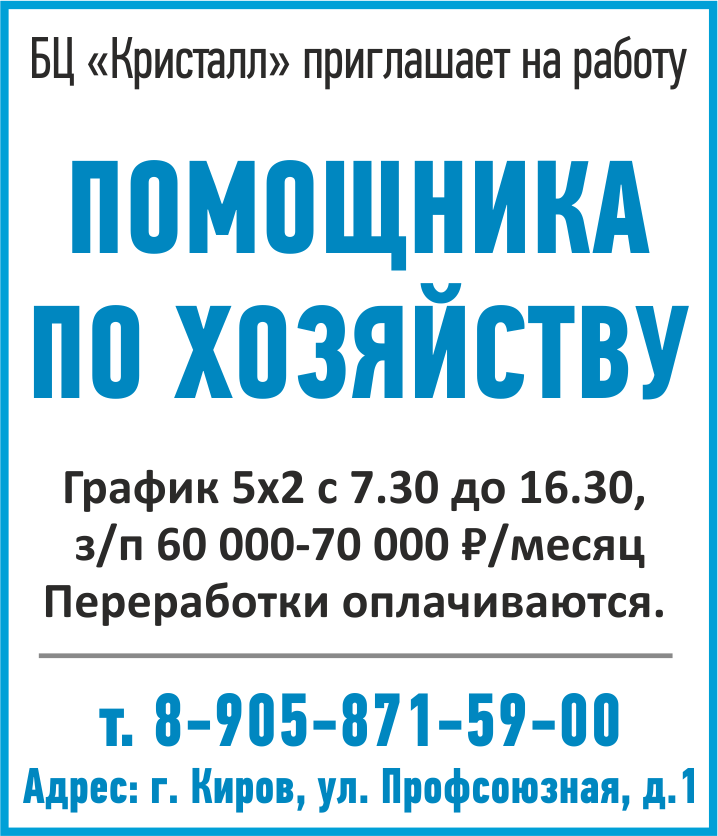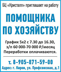 Предлагаю вам ознакомиться со свежими предложениями о работе в Кирове.