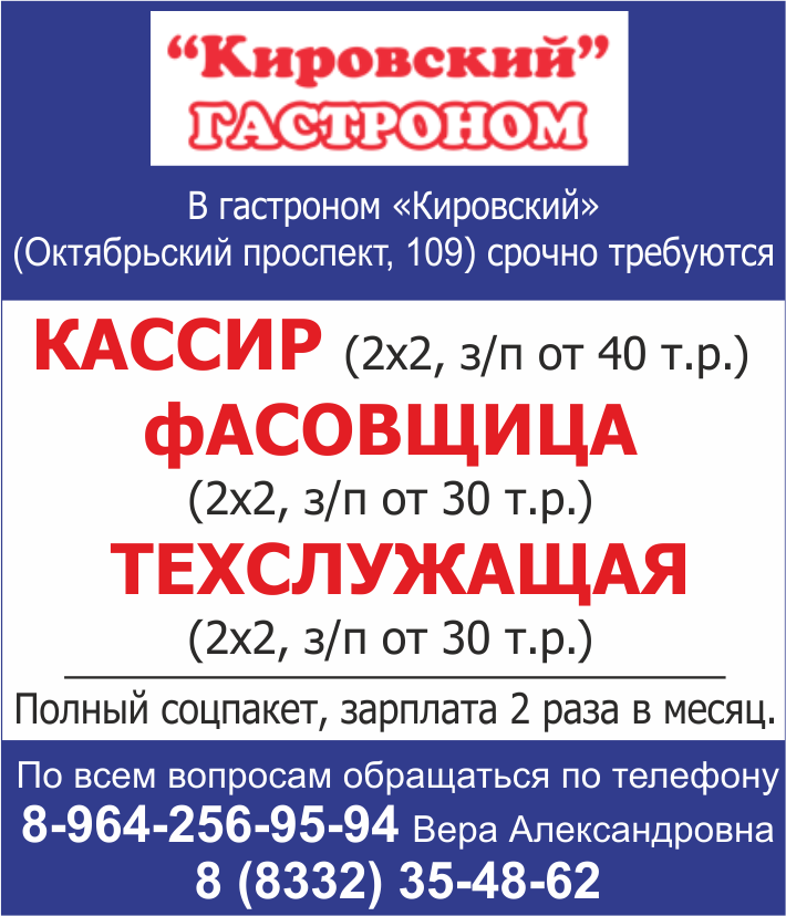 Как всегда только свежие и актуальные вакансии Кирова на страницах нашего издания