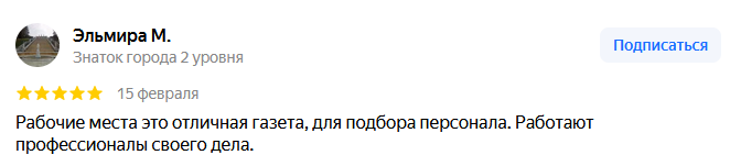 Сотрудничество с газетой "Рабочие места" началось с совета знакомой - вакансий много, работодатели реальные. Разместилась. Объявление отработало на 100%. В дальнейшем из интереса сравнивала с другими подобными компаниями, но в конечном итоге "Рабочие места" доказали свою результативность. Сегодня являемся неизменными партнерами. Приятно иметь дело с профессиональной компанией.